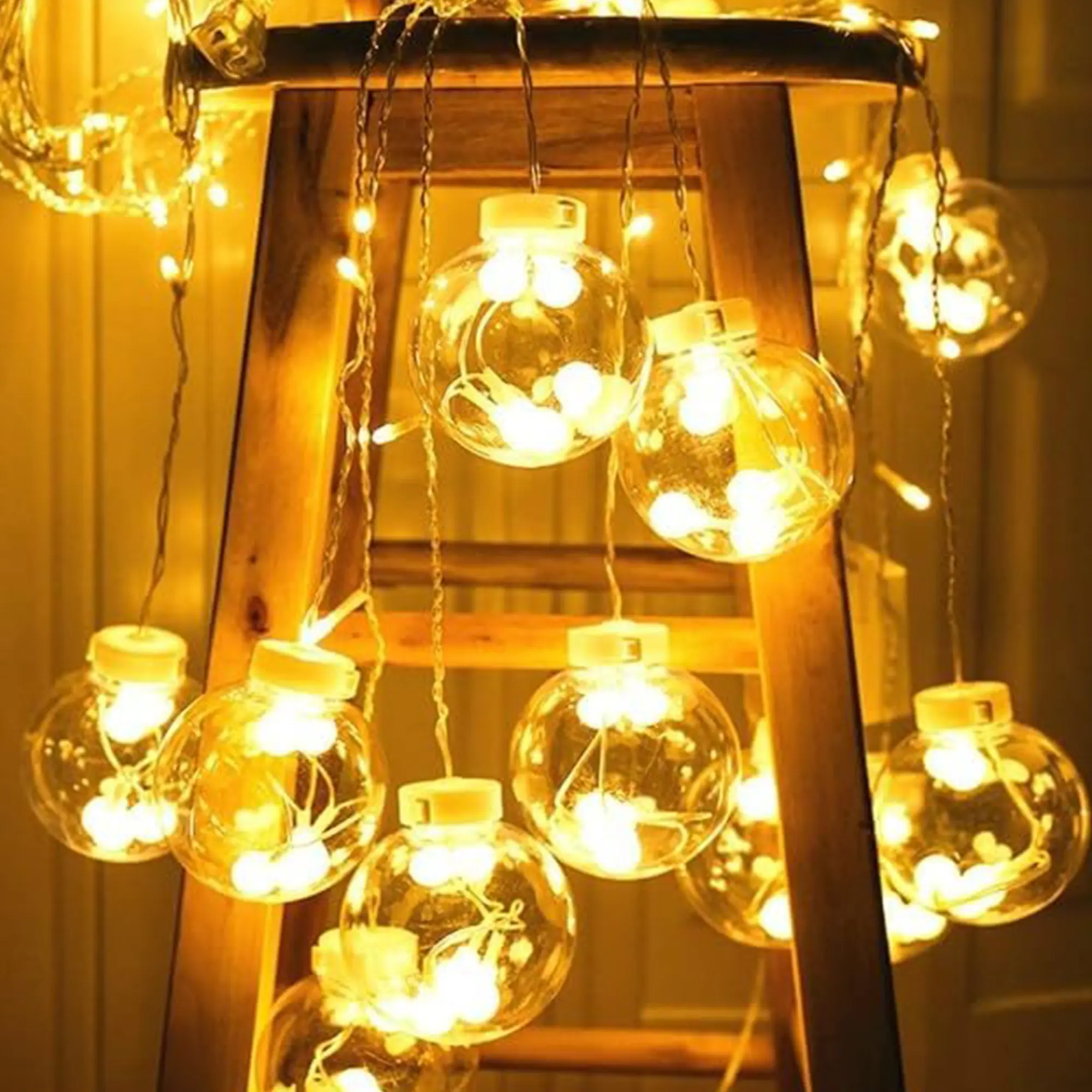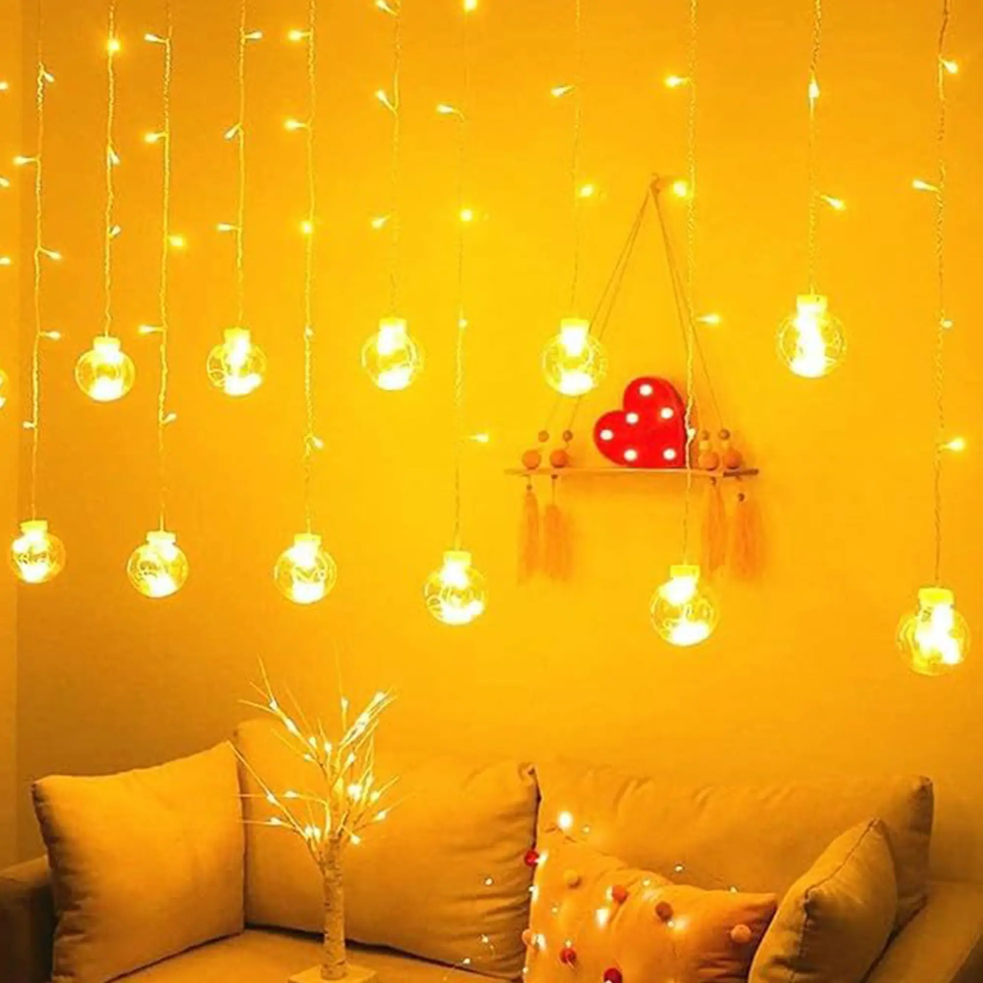 10 Wishing Balls Curtain With 8 Lighting Modes Operated for Window Wall Home Decoration 1.32 m Yellow Steady Ball Festival Lights