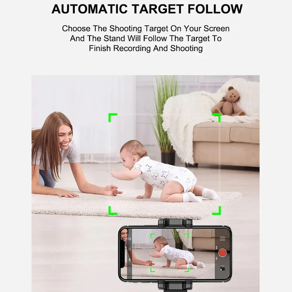- Face tracking and intelligent shooting】: Face tracking holder introduce the AI technology of human image composition and scale estimation into intelligent shooting,360 degrees rotate around, and automatically recognize the person / PET. When you go, the mobile phone will turn to where you want to go, set the pose, and take pictures automatically at a fixed time of 3 seconds. Great for Lectures, Sporting Events, Presentations. Group Photos, Adventure