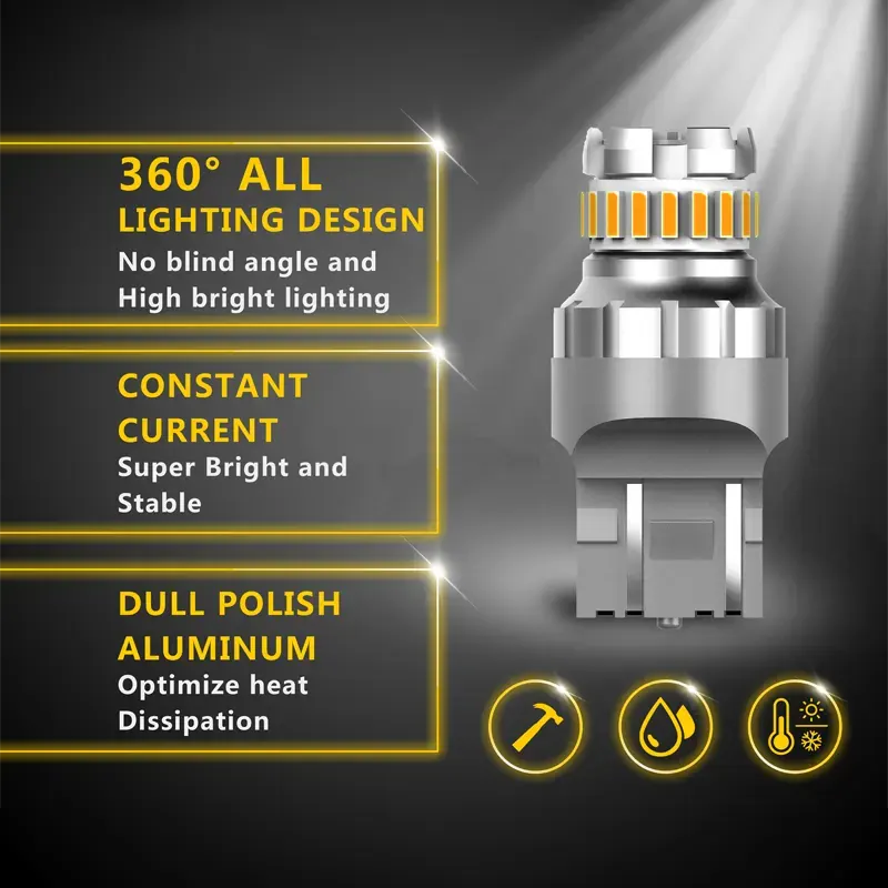 Amber Bulbs For Reverse Lights, 7443 23smd, Brake, Signal, Parking Lights, High Lumen output 580Lm, and No Flickering issue