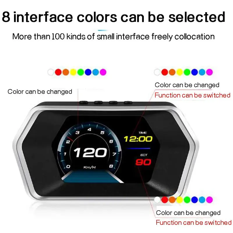 - This head-up display is designed with more than 100 small interfaces and 8 colors offer you to meet your needs.