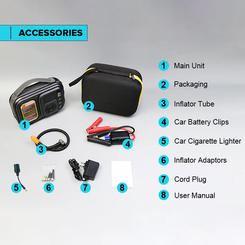 - Extremely simple to use, just plug in TBS 20A 5-in-1 setup and it quickly provides power, inflates tires, charges gadgets or lights the way as needed.