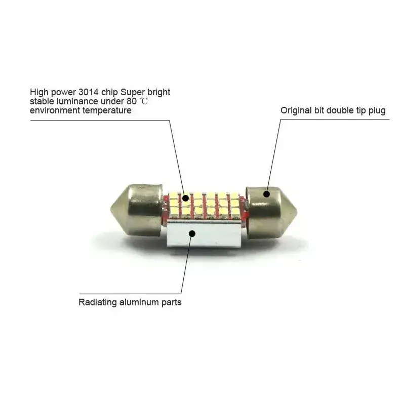 Tags: brake lights, COB & SMD, corner light, error free car light, parking light, PCB canbus 57smd, reading lamp, side marker light, T11 3014 31mm 18smd, T11 Car dome light, turn signal light, width lamp