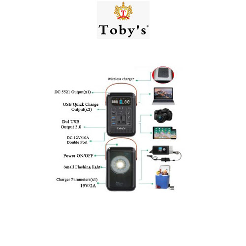 - DC or AC : Integrates with car charger interface. If use Toby’s inverter it can provide both DC and AC output, to satisfy your different needs of charging Low Weight : With leather wristband, the small size of TBS-47A allows you just take it and go. Not only for car but outdoor activities.