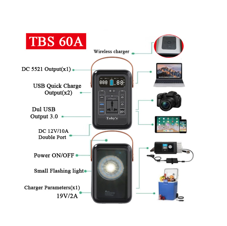 - Safer with automotive power supply : Equip with automotive power supply Lithium iron phosphate battery TBS-60A is safer and has longer service life