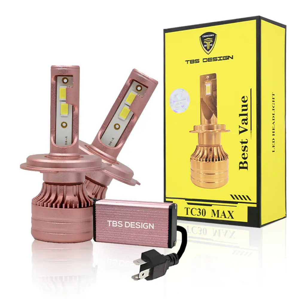 TBS DESIGN 2 Pieces TC30 MAX H4 60W/Pair LED Headlight Bulb Assembly 6000/Pair Lumens Xtreme Bright With Color Temperature 6500K