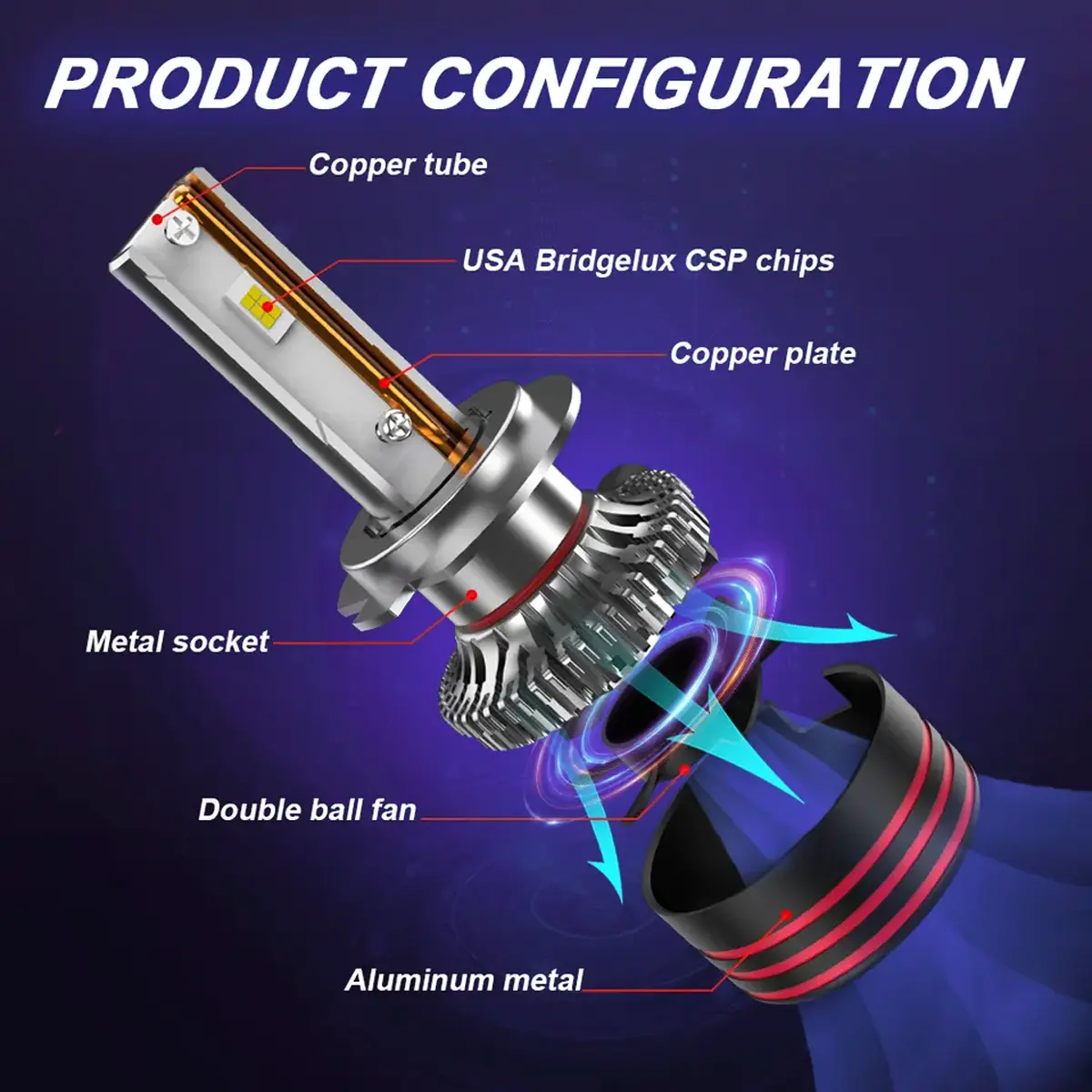 4 Times Brightness of Halogen: 6000k led bulbs kit to provide 110W 11000LM per Pair, super-focused bright 6000K warm white light enough to replace your yellow stock bulb. no blinding and dazzles oncoming traffic.
