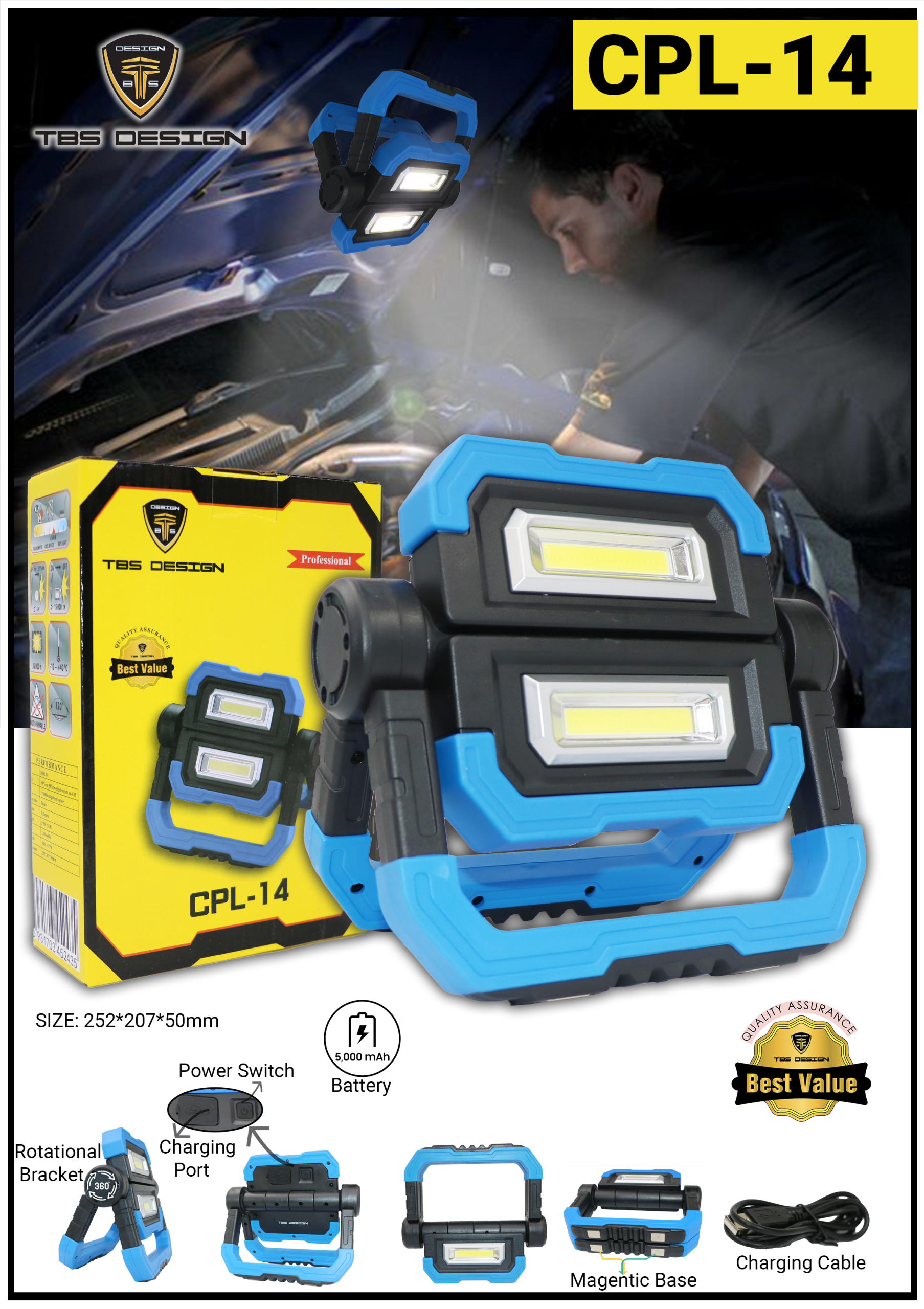 TBS DESIGN New Launched CPL-14 1000 Lumen 2 Pieces COB Work Light With Power Bank and Magnet on the Support