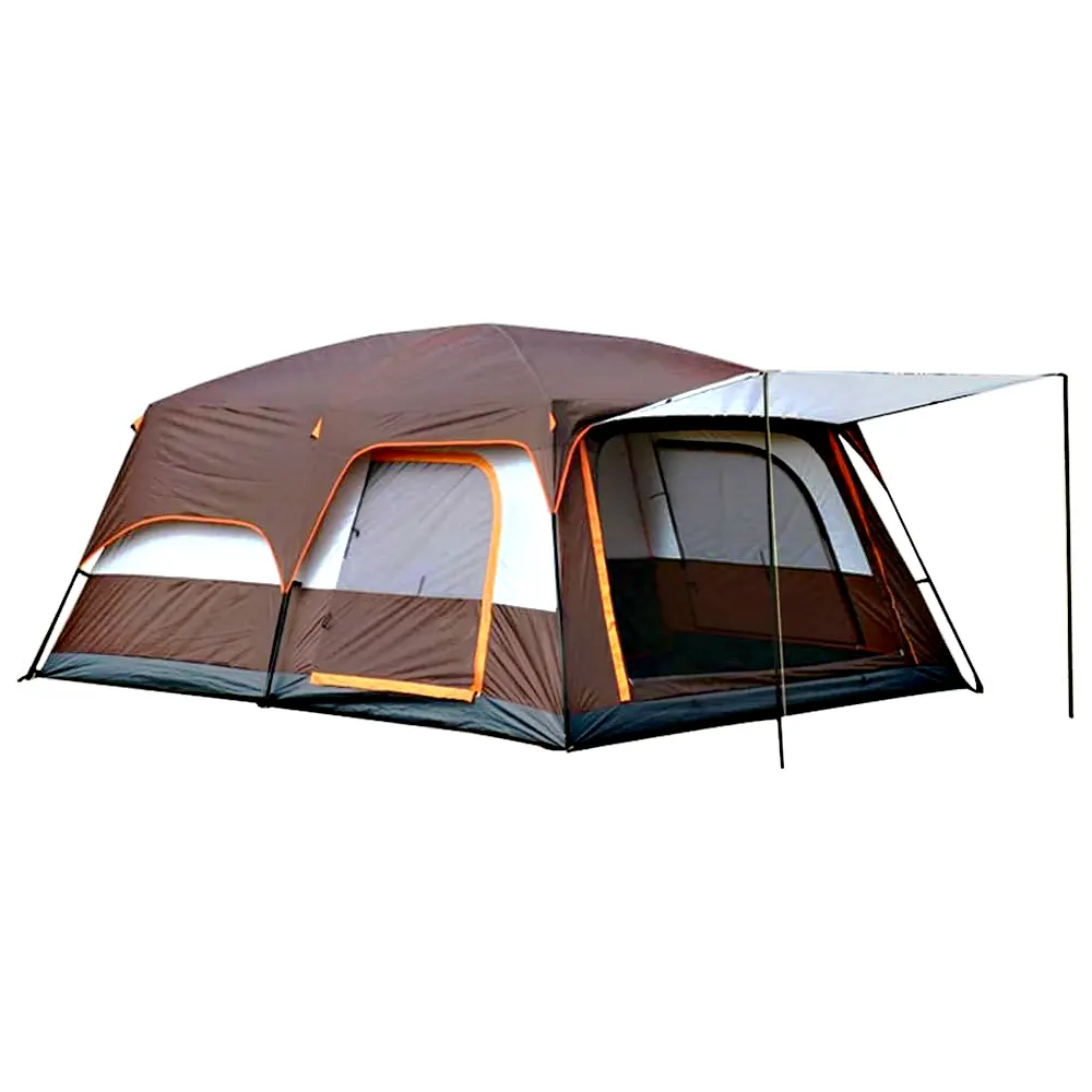 Tobys 096 Big Brown Camping Tent with 2 Extra Dark Sleeping Cabins for 8-12 Person