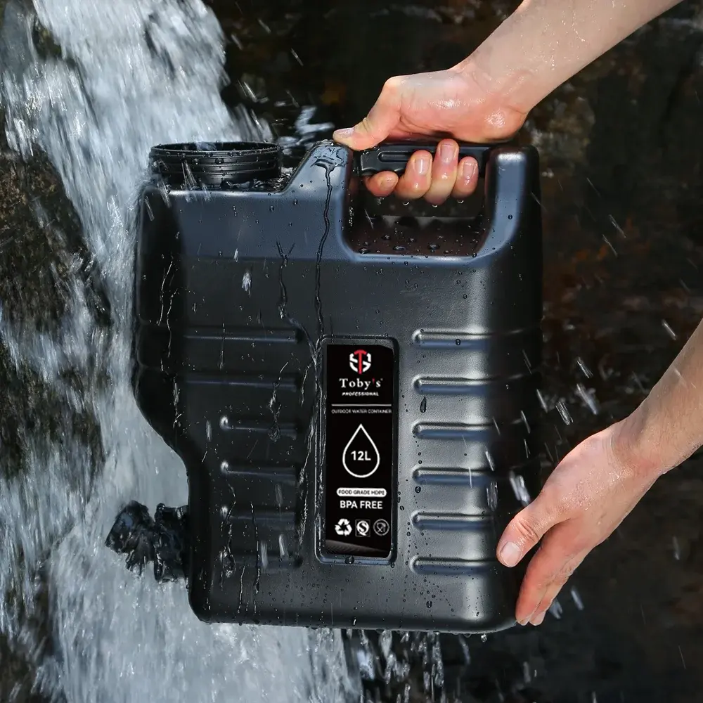 Tobys 12L Water Bucket BPA Free Portable Camping Water Container With Tap Large Capacity Water Storage Bin For Camping, Outdoor Party, Van, RV, Emergency (Color: Black)