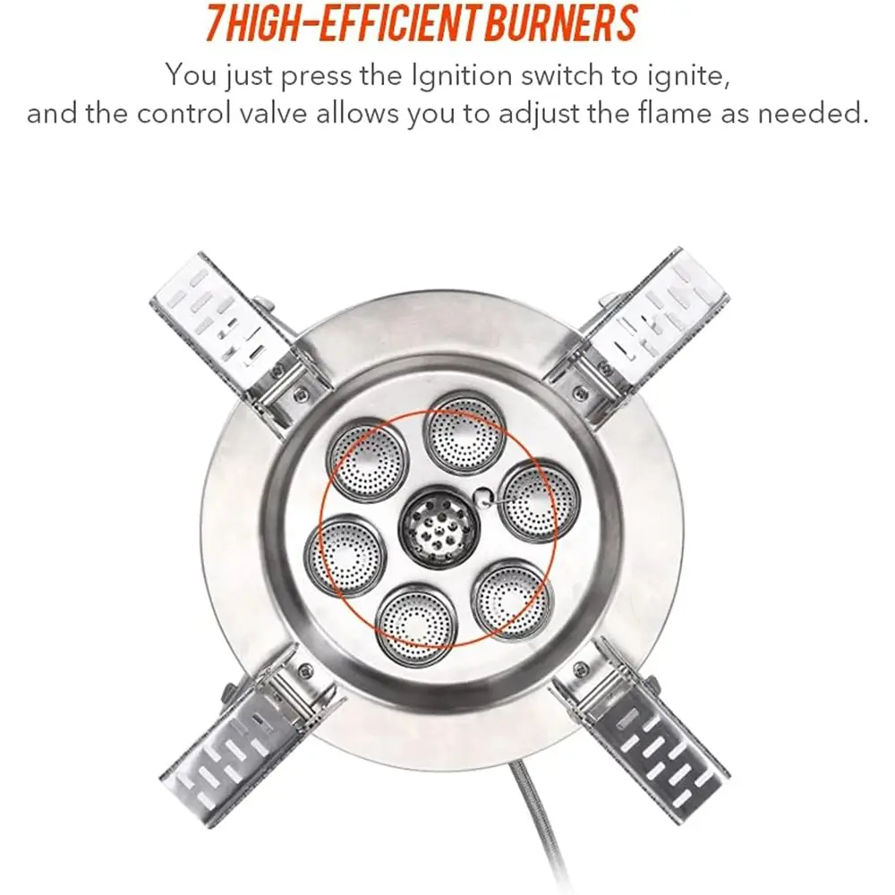 - Gas saving——Our portable gas cooker is designed with seven burners to accelerate fuel evaporation and achieve better combustion.