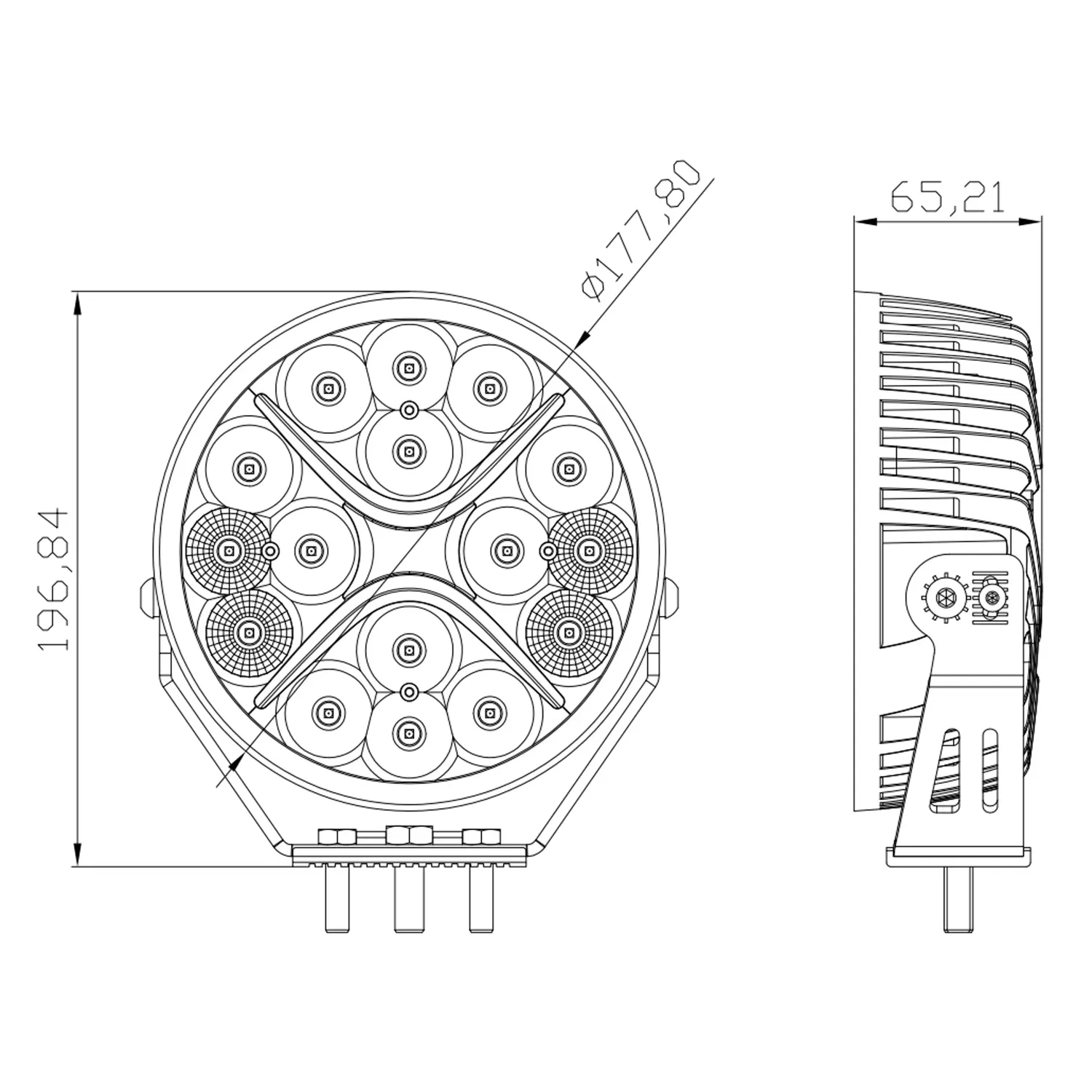 - The aluminum body and steel fasteners make this headlight resistant to environmental influences and harsh operating conditions.