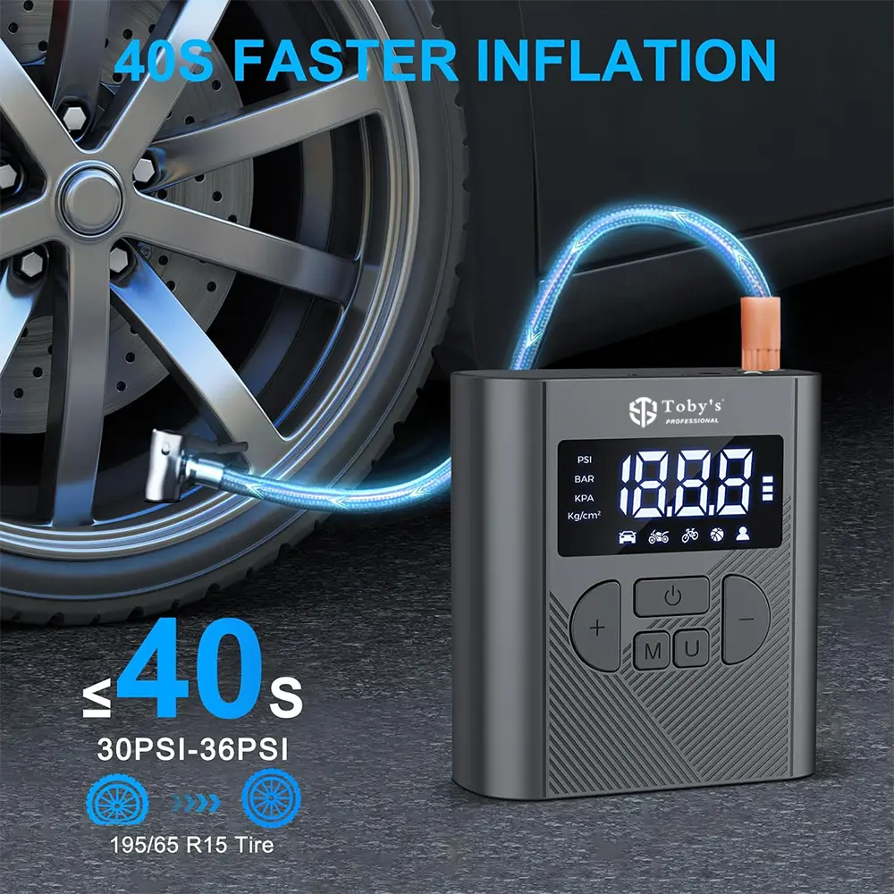Tobys AC-P6 Tire Inflator Portable Air Compressor 20000mAh Battery & 12V DC Cordless Air Pump for Car Tires 150PSI