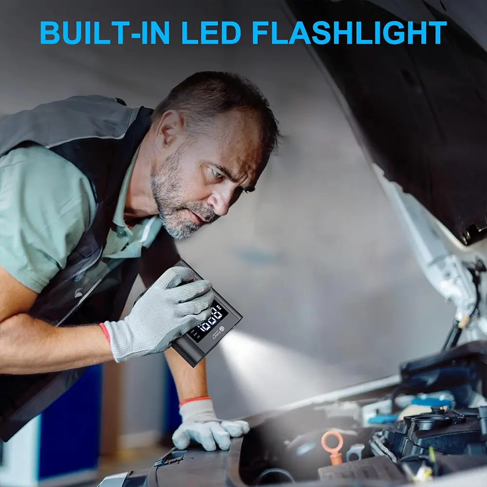 - 【Mobile Power Supply & LED Flashlight】 This electric air compressor can also be used as a mobile power supply and flashlight. The electric air compressor is equipped with an LED light, which can be easily used even in the dark. In addition, the capacity of the electric tire inflator is 2000mAh*3, with a USB port for charging your phone.