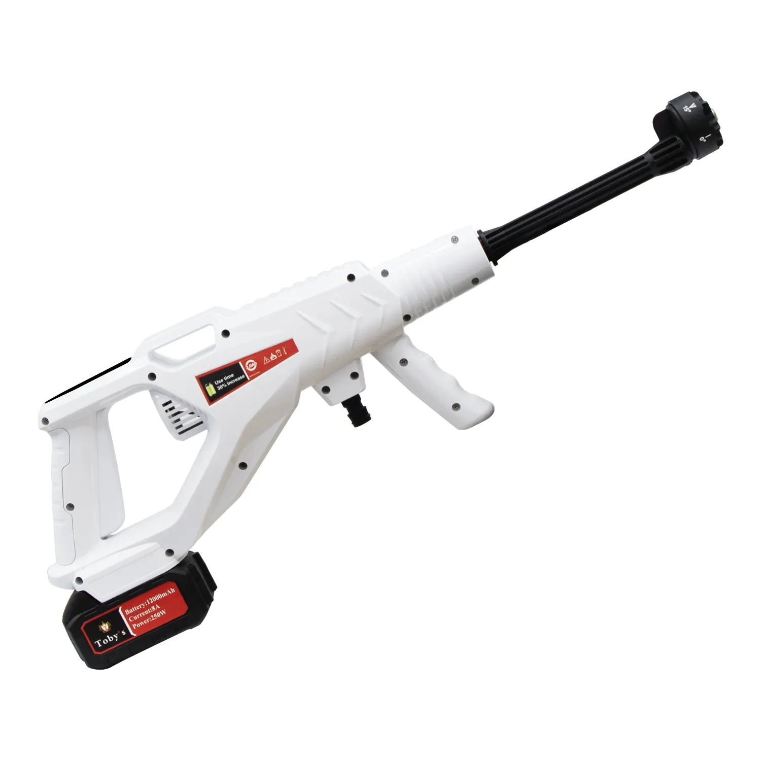 - Compared with traditional battery pressure washer, Toby’s design cordless pressure washers are lighter with only 2kg. It come with a 5mtr hose with filter, You can easily get water from the lake, swimming pool, pier, bucket.