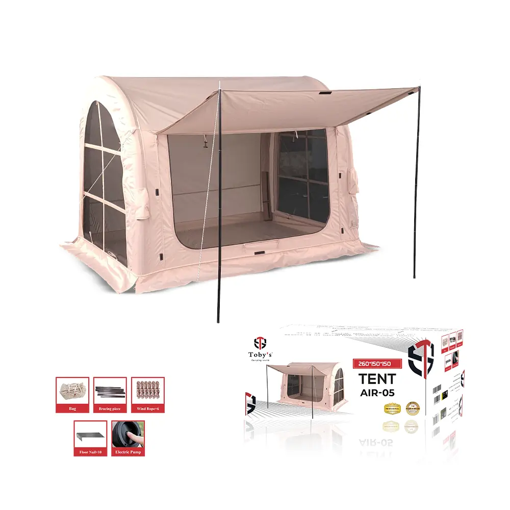 Tobys Inflatable Camping Tent 05 With Pump Easy Setup 4 Season Waterproof Windproof Outdoor Oxford Tent Luxury Cabin Tent Mesh Windows & Doors