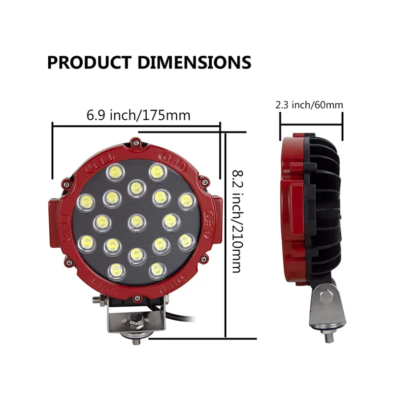 - 1 x 7 inch 51W led Work Light with Mounting Bracket