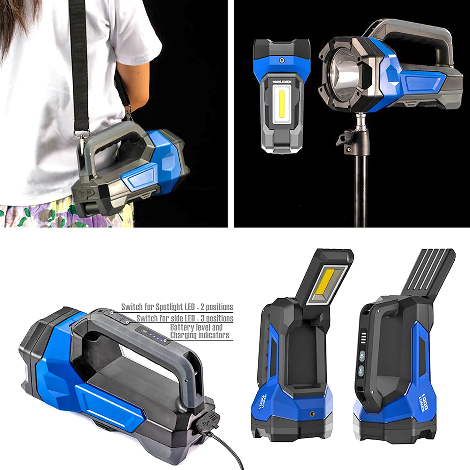 - As a versatile rechargeable flashlight, it is not only a powerful handheld device. Spotlight But also a flood Work light .