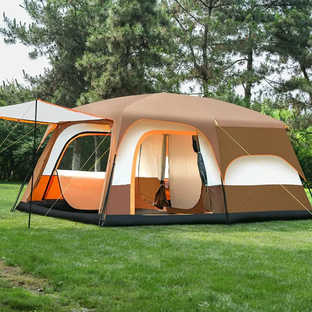 Toby’s New 4-6 person double layer outdoor camping tent, A bedrooms and a living room, family cabin (Khaki)