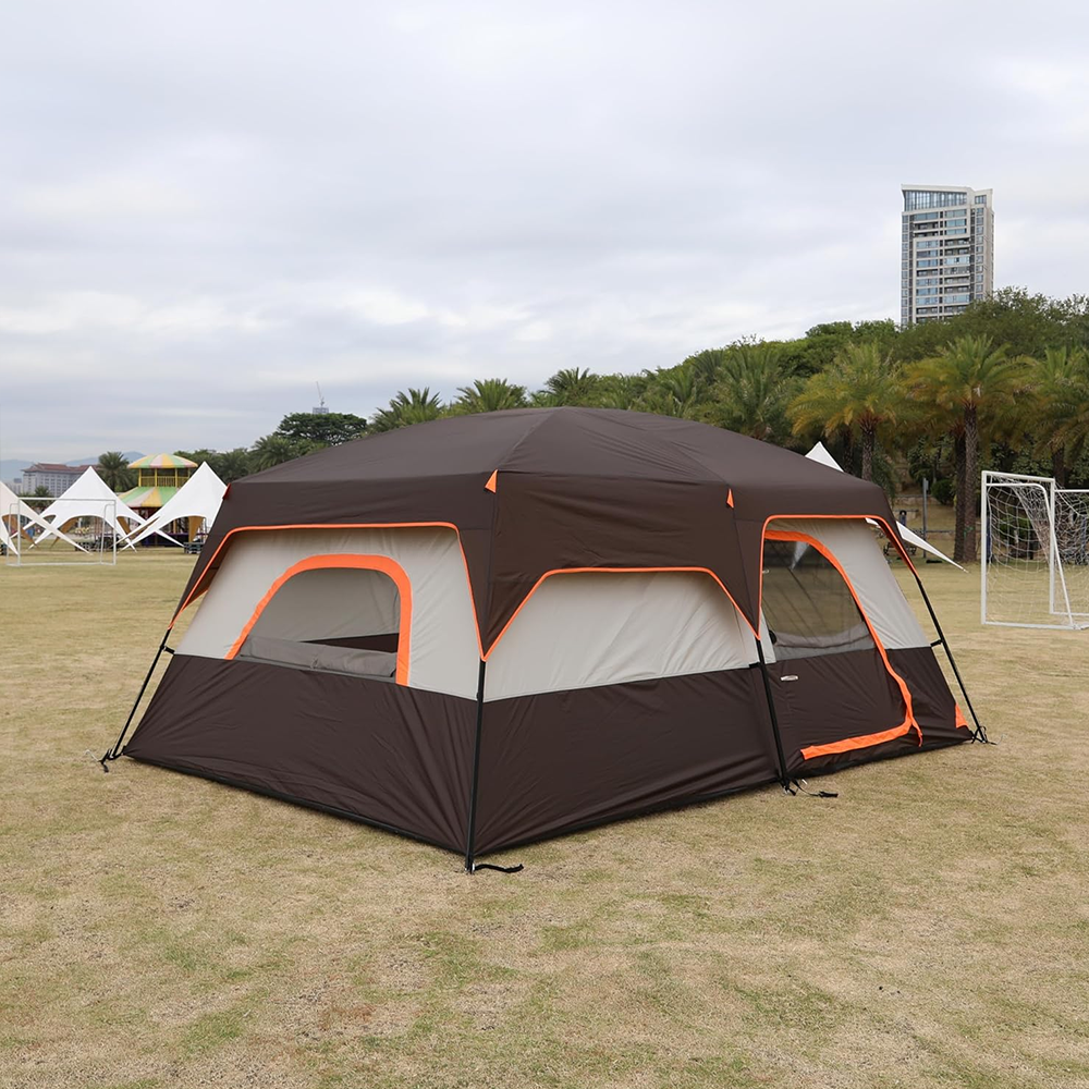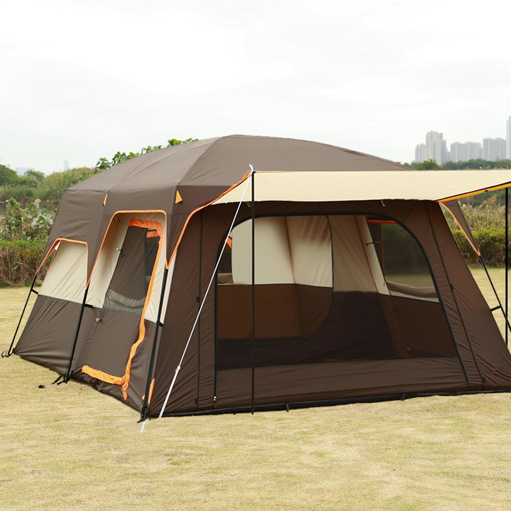 Toby’s New 8-12 person double layer outdoor camping tent, a bedroom and a living room, family cabin (Brown)