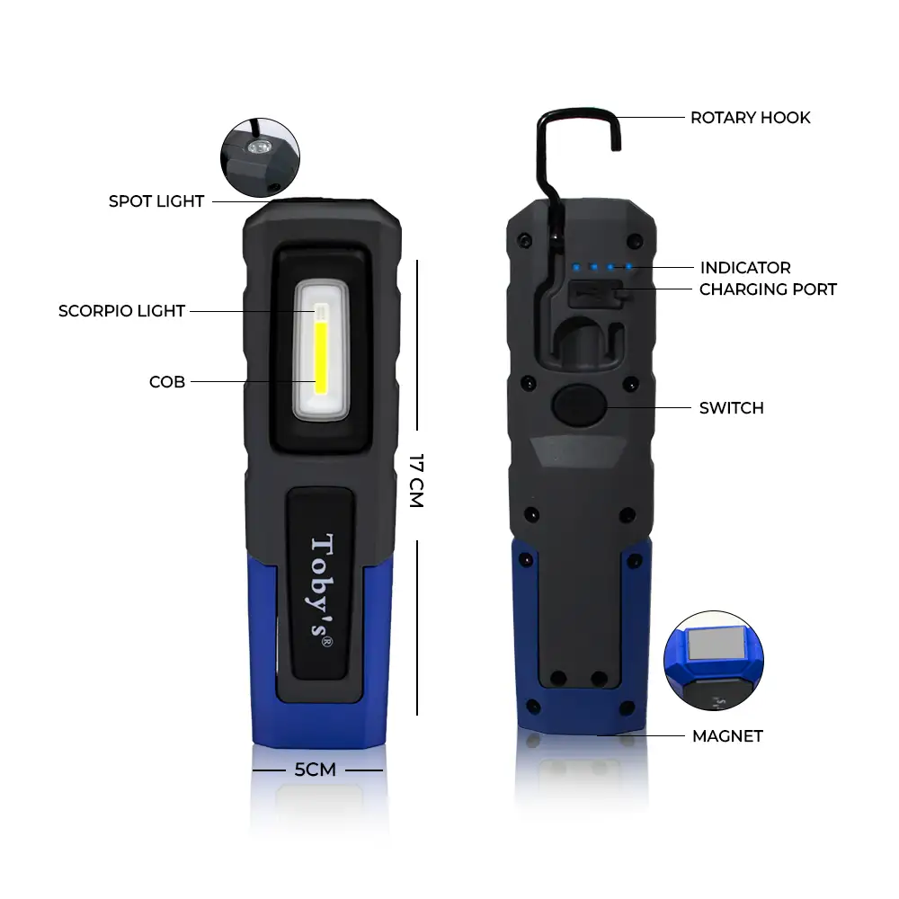 Toby’s New COB/SMD LED Workshop Lamp Inspection Lights with Hook and Magnetic Holder, Double Power LED Camping Lamp for Car Repair Workshop Camping (CPL-T20)