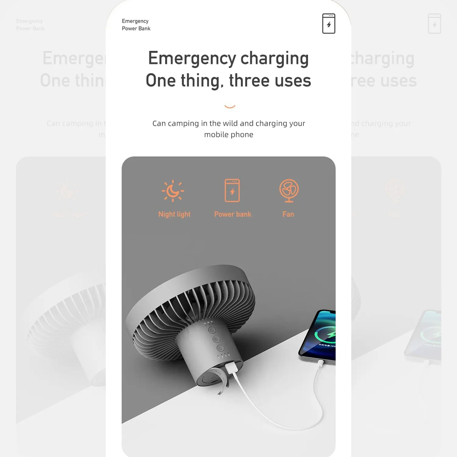 - At the same time, this portable fan can also be used as an emergency power bank in an emergency.