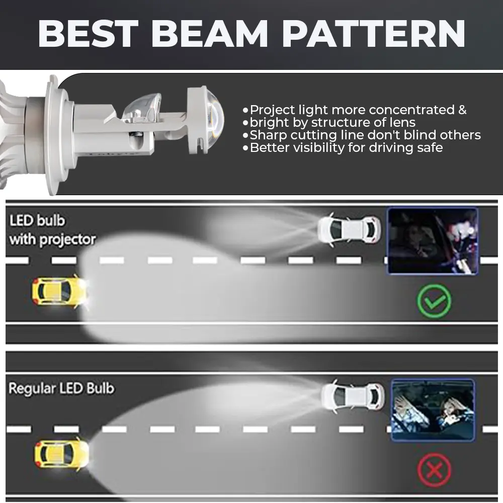 - 【Perfect Beam Pattern】H7 LED with perfect cutting lines, No glare to oncoming drivers. With doubled HD projector lens and reflector integrated design, which make the light more concentrated, Provide a wider and farther view on the road.