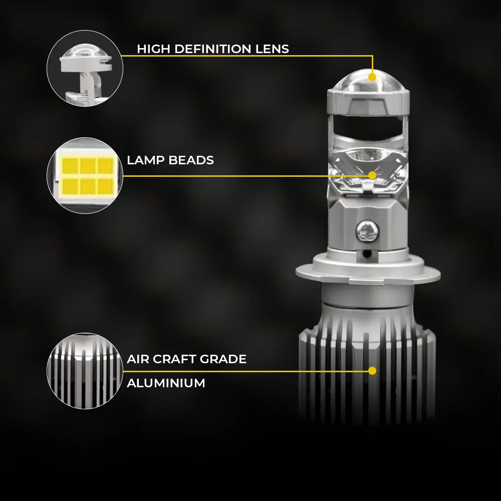 Ability to focus light properly, even illumination with built-in dual projector lens, one focusing high beam light, the other for low beam light. Avoiding mess with driving focus, great outward vision inside Auto.