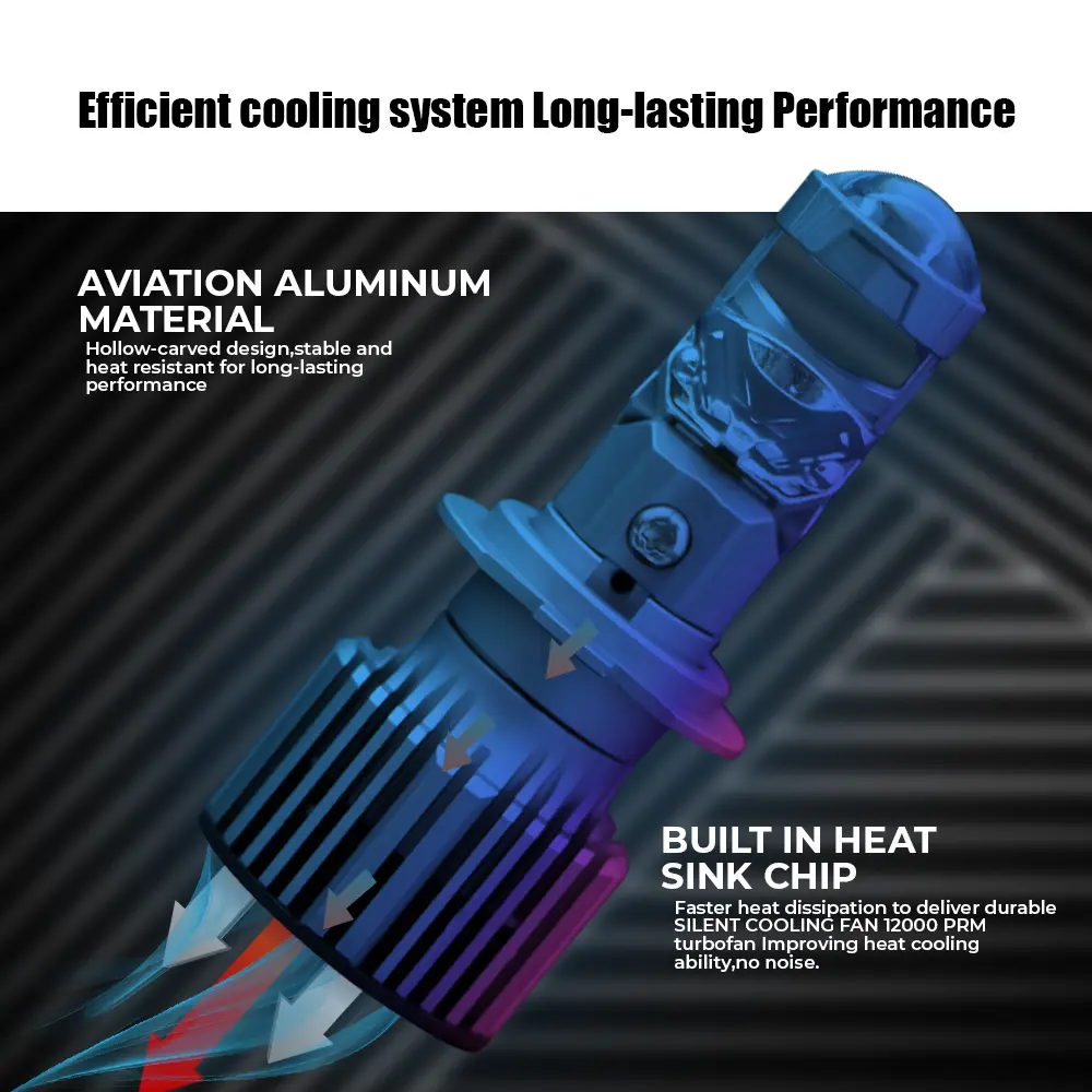 - 【Fast Heat Dissipation】H7 led with advanced aluminum heat-dissipating materials, and 12,000 RPM cooling fan, which provides powerful cooling wind to help dissipate the heat generated by the LED chip and ensure the bulb works steadily. Make the lifespan over 30,000 hours.