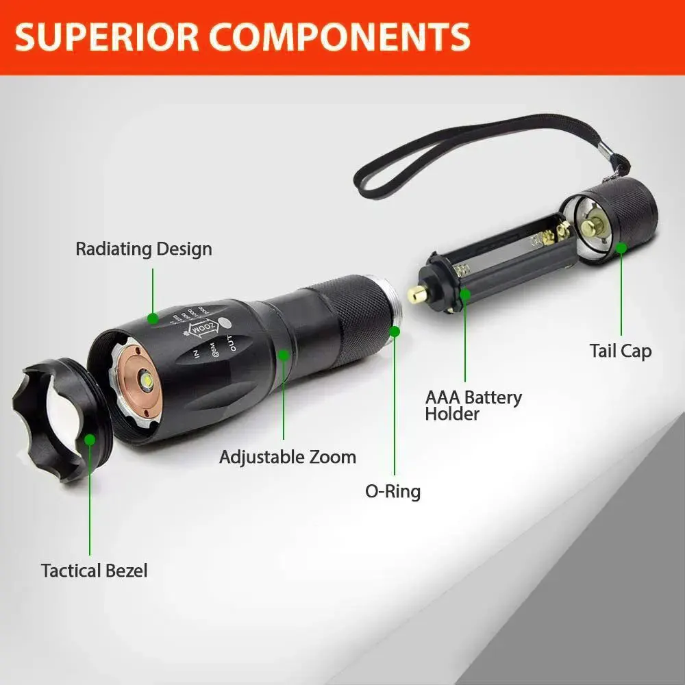 - DURABLE DESIGN: Constructed from high-strength aluminum alloy, this flashlight can withstand rugged conditions and impacts, making it suitable for various outdoor activities.