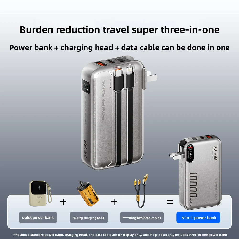 - 10,000mAh high-capacity power bank with 22.5W fast charging.