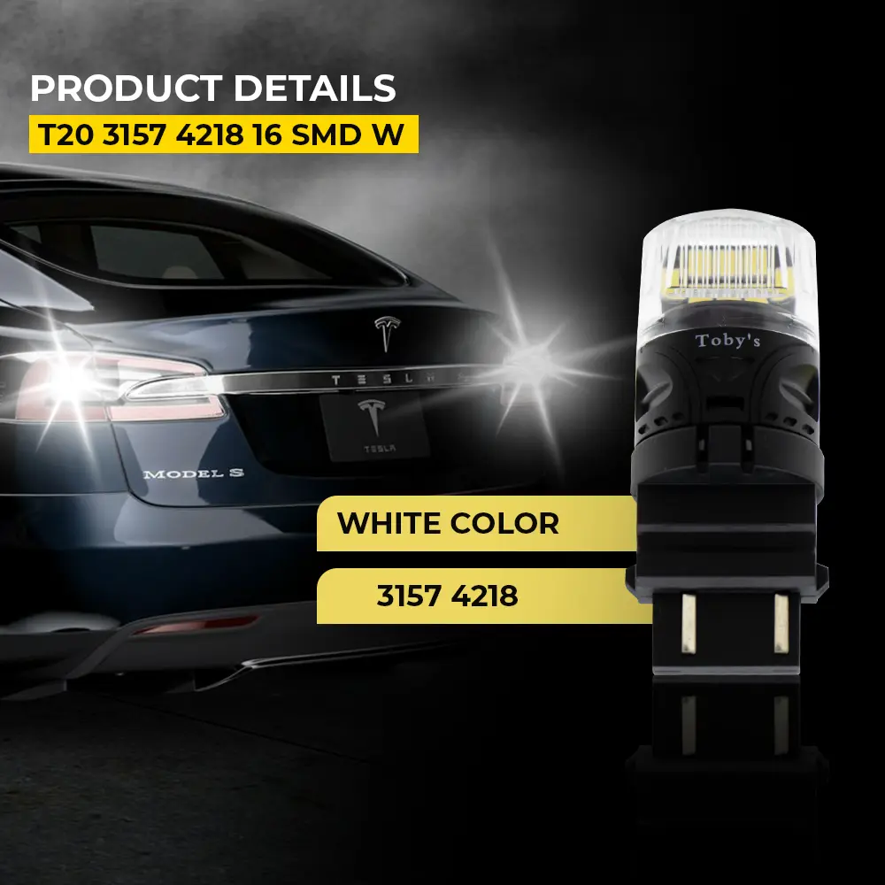 Tobys Super Bright Power T20 3157 16SMD LED Bulbs with 4218 Chip replacement for Back Up Reverse Brake Lights (White)