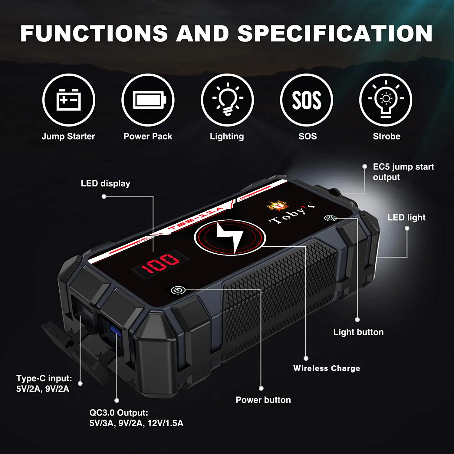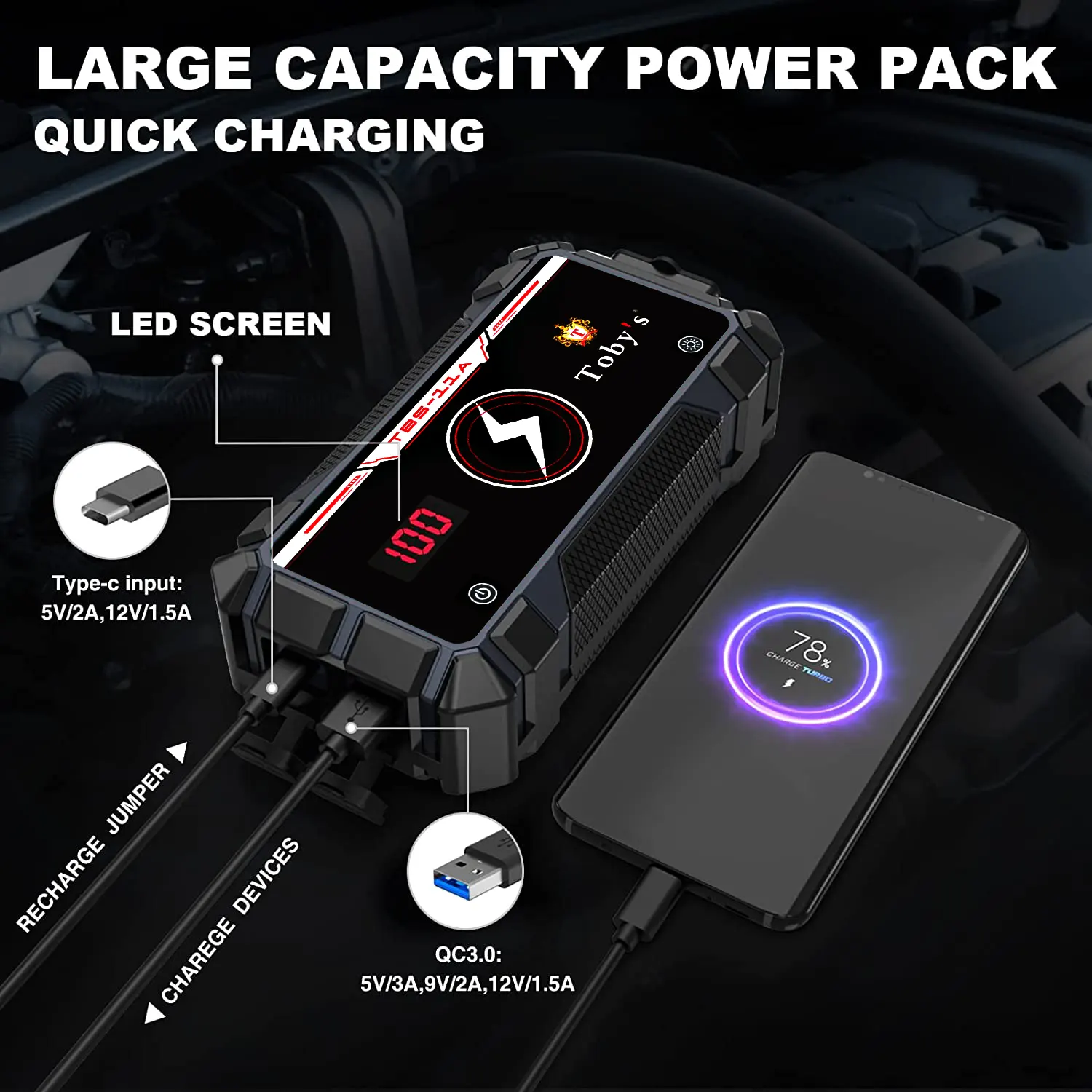Tobys TBS 11A Jump Starter For Cars 11000mAh And 40.7WH Power Bank For Electronic Devices