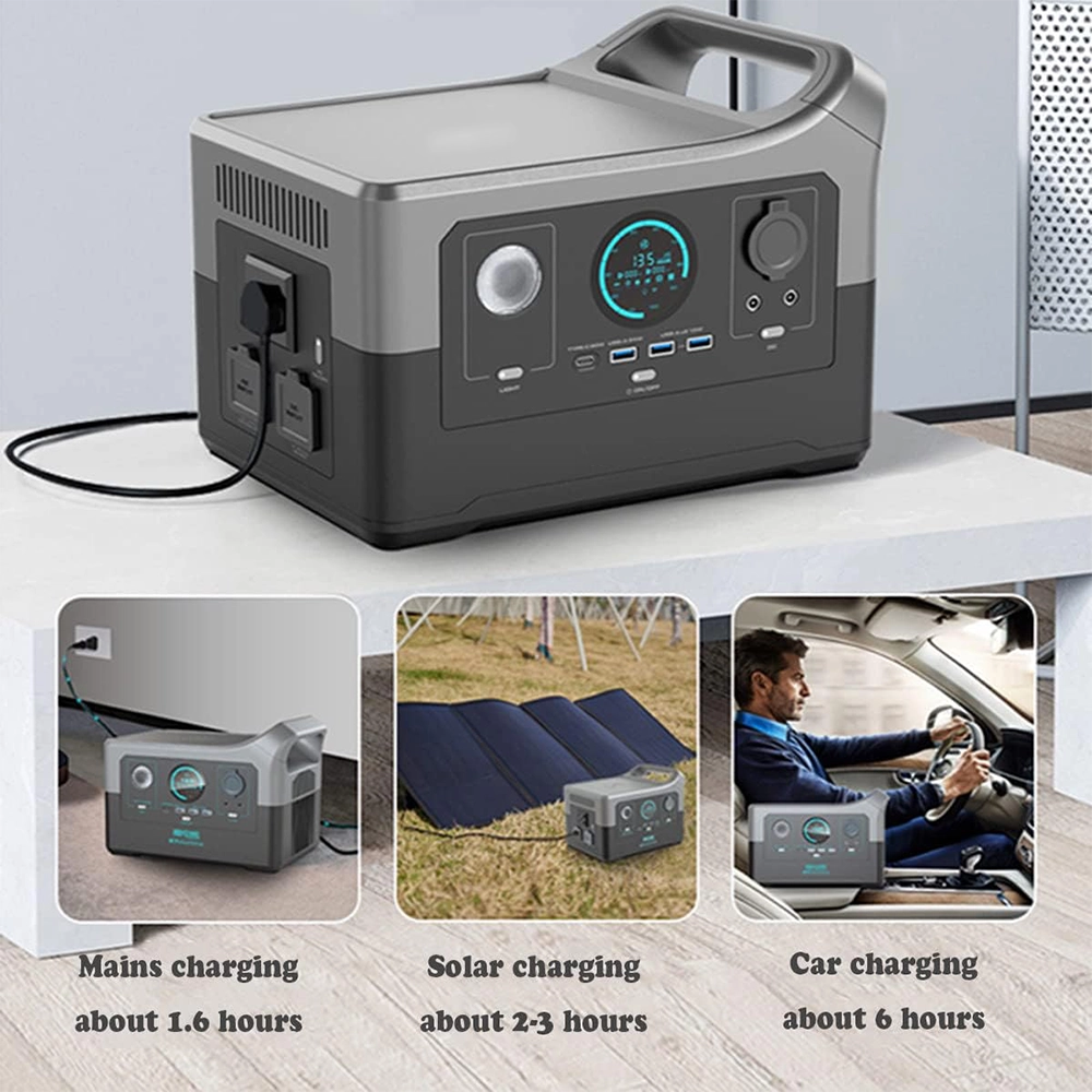 - The capacity is 504Wh/140000mAh, portable power station with LifePO4 battery. The whole process is a pure sine wave output, providing stable current and tension.
