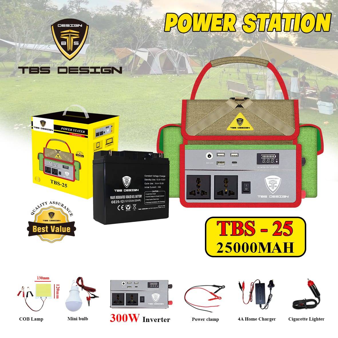 Toby’s TBS 25A Battery 25000mAh Power Rechargeable Battery With 220V Power Inverter Best For Camping