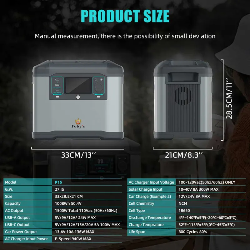 Tags: 1008Wh Portable Charging Station Fast Recharge 80% in 1H, 1500W Power Station, 160W Solar Panel, 3 AC Outlets (Peak 2500W) Portable Power Backup for Camping RV/Van Emergency, P15, P15 Power Station, Portable Power Station 1500W, TBS 273A, tbs273a