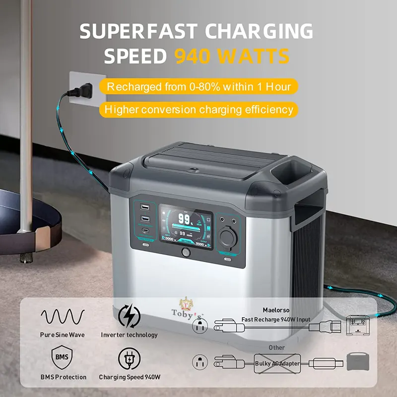 - Wall Outlet Input 940 Max: Fast Charging from 0 to 80% within 1 Hour