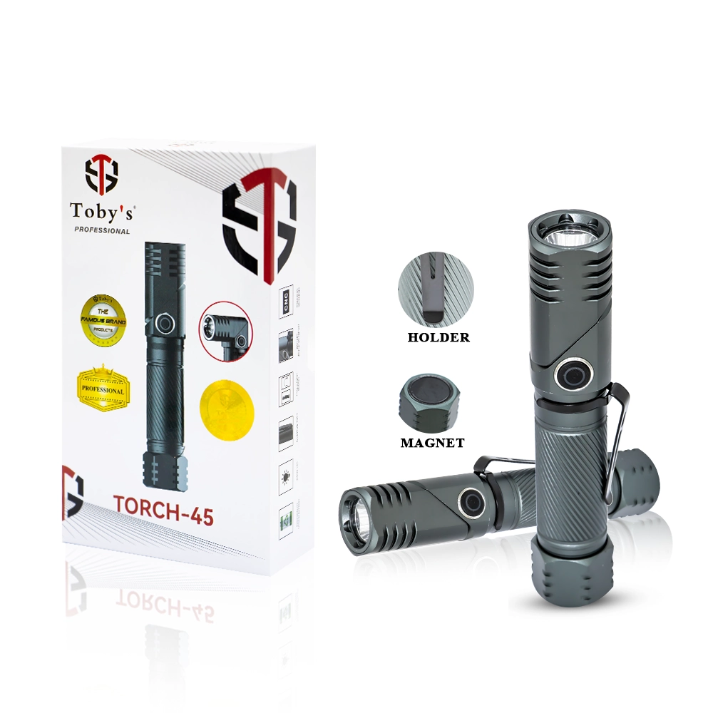 Toby’s Torch-45 Rechargeable LED Bright Powerful Torch Light – High Strength Aluminum Alloy – Long Lasting Battery Life