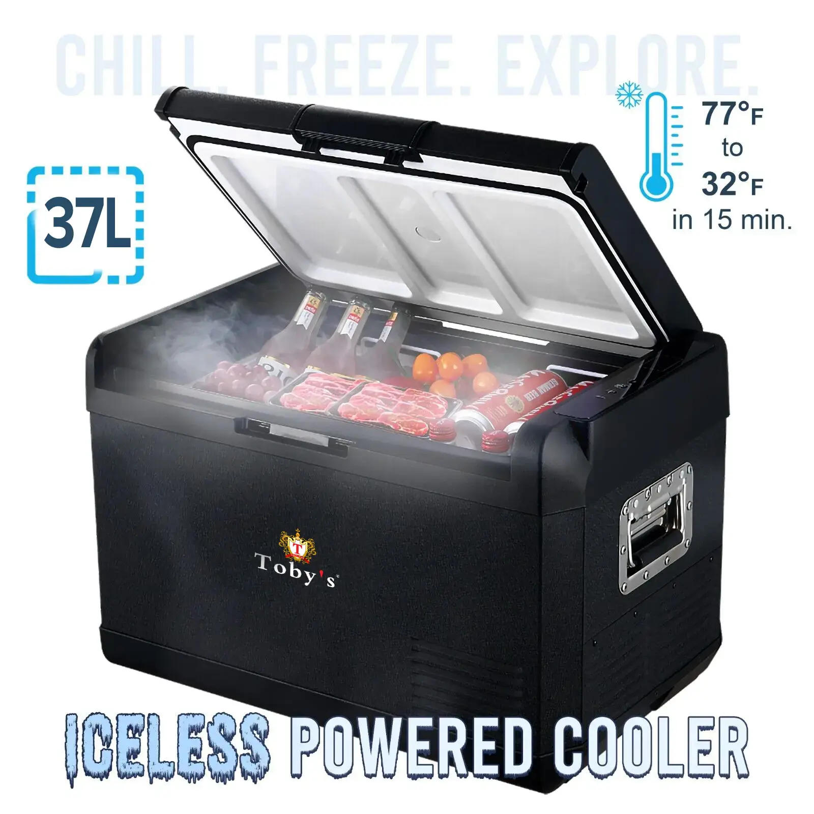 Toby’s TR-37 Electric Cooler Portable Refrigerator Freezer Compact Fridge freezer Electric Cooler for Car RV Vehicle Boat Home Use Travel Camping Truck Party Picnic Outdoor (37 Liter)