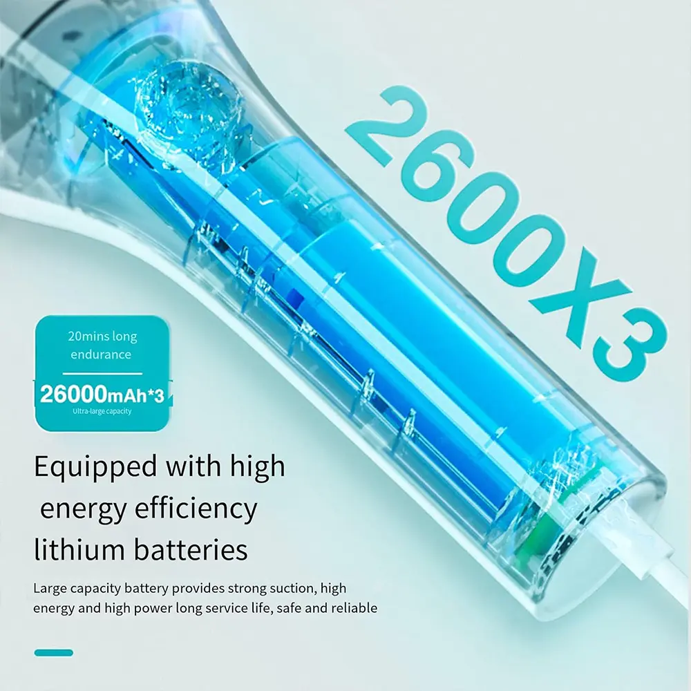 - Super battery life: Intelligent AI chip, super long battery life, efficiency priority intelligent adjustment mode, as the power decreases, the motor speed is optimized, and the Car Vacuum Cleaner can increase battery life by 600% while ensuring strong suction.