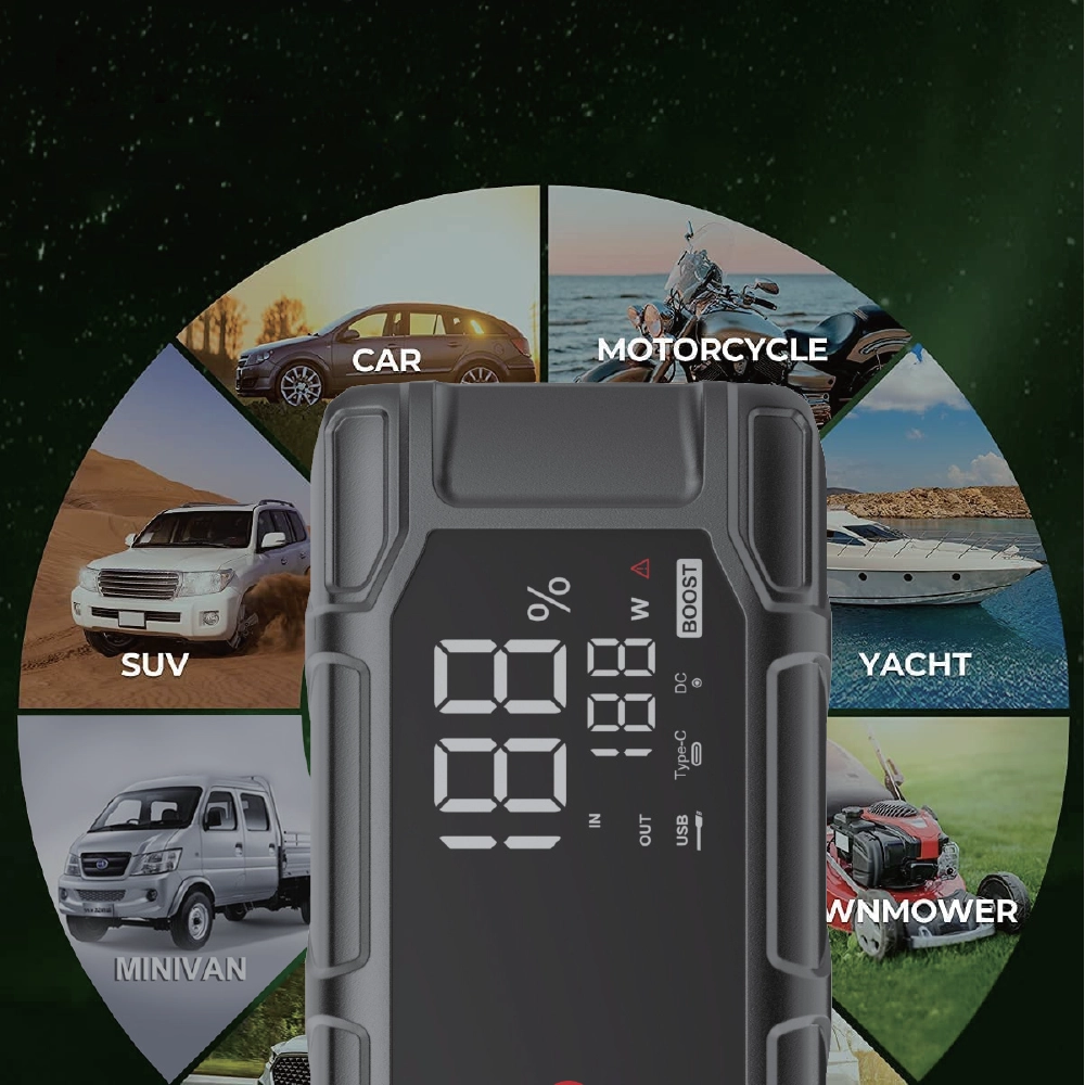 The best portable jump starter for emergency car charging, with the ability to recharge your mobile phone and other devices.